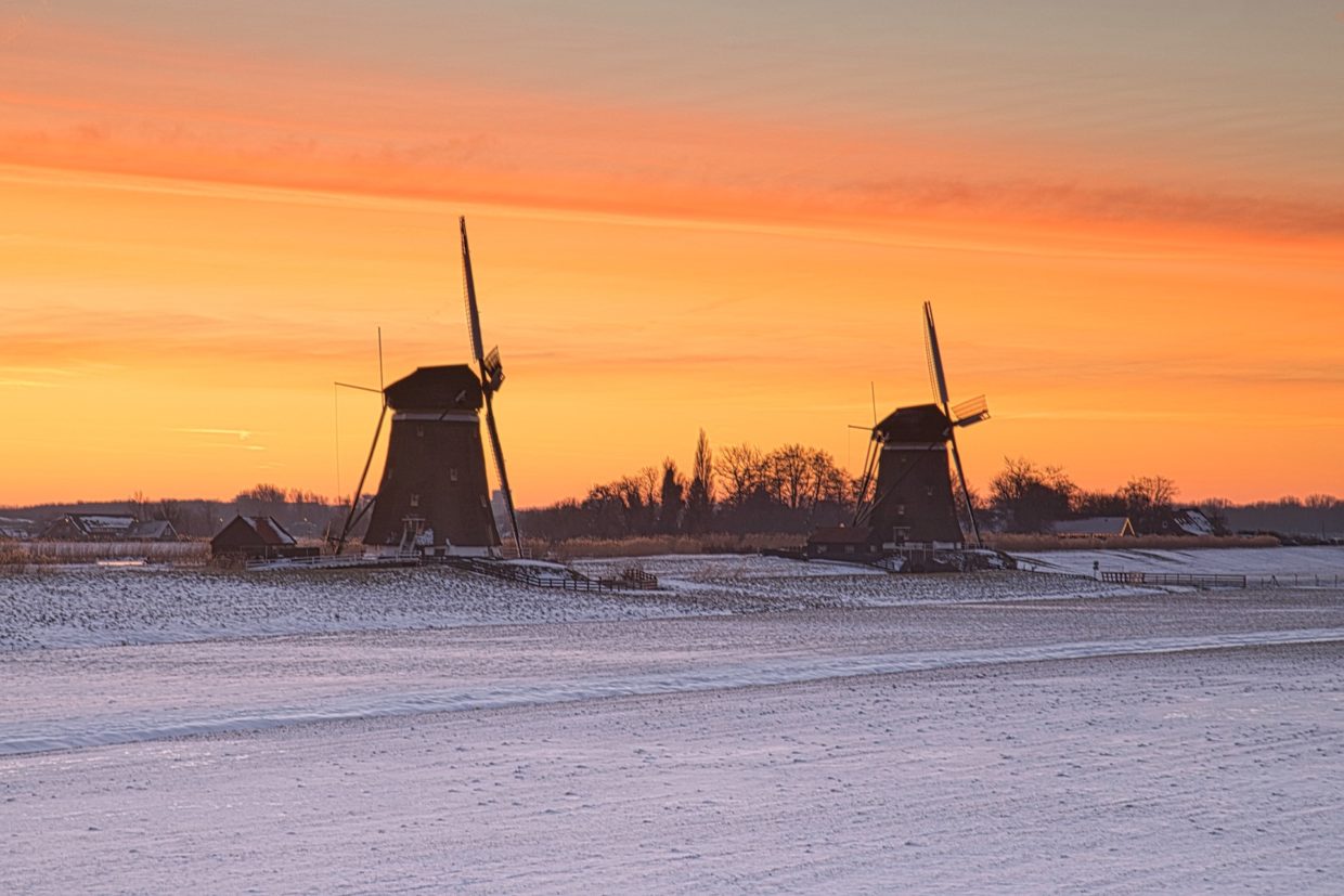 Another cold and clear morning in Leidschendam (NL). The “molendriegang” showed itself with a very nice red sky at sunrise. The cold and clear sky was just being covered with the high clouds that signalled the end of the ice period in the Netherlands.